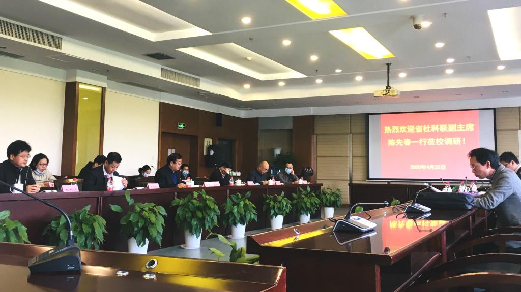 汪浩瀚对陈先春一行的莅校表示热烈欢迎,并简要介绍了我校的发展历程、人文社科基本情况和下步文科发展举措,同时希望省社科联在今后学校建设发展中给予更多的关心、支持和指导。